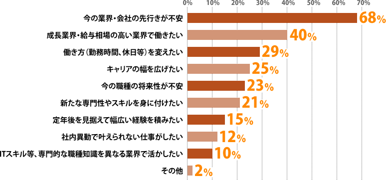 異業種・異業界企業への転職を希望するミドル人材の希望理由について、直近増加しているものを教えてください。