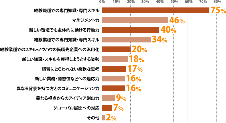異業種からのミドルの転職者に対して、「採用企業が期待するもの」は何ですか?上位3つを教えてください。