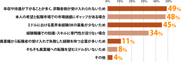 ミドルの転職者が異業種への転職が出来ない理由は何ですか?上位2つの理由を教えてください。