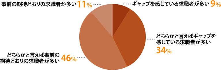 転職後に「事前の期待とのギャップを感じている求職者」と「事前の期待どおりと感じている求職者」では、どちらが多いですか?