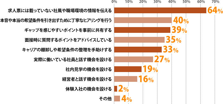 上記のようなギャップを避けるため、どのようなサポートを行っていますか?