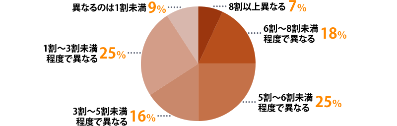 「転職者が企業に伝える転職理由(建前)と本当の転職理由(本音)が異なるケースはありますか」との質問にて、半数のコンサルタントが「5割以上で異なる」を選択。また「転職理由によって、転職後の満足度に差が出ると思いますか」との質問では、82%が「思う」と回答しました。