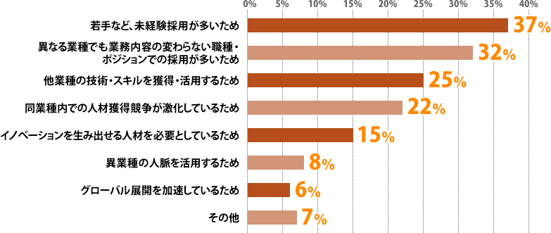 前業界での専門スキル:「例えばIT企業であれば、実際の顧客企業の業界/業務知識に乏しい為、流通業や製造業の方を採用する」