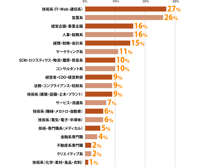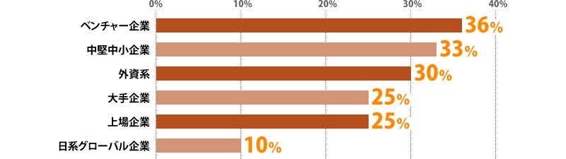 現状を好機と捉えている企業があるかを伺ったところ、37%が「ある」と回答。好機と捉え採用を実施している企業タイプは「ベンチャー・中堅中小企業」、職種は「技術系(IT・web・通信)」「営業系」が上位となりました。