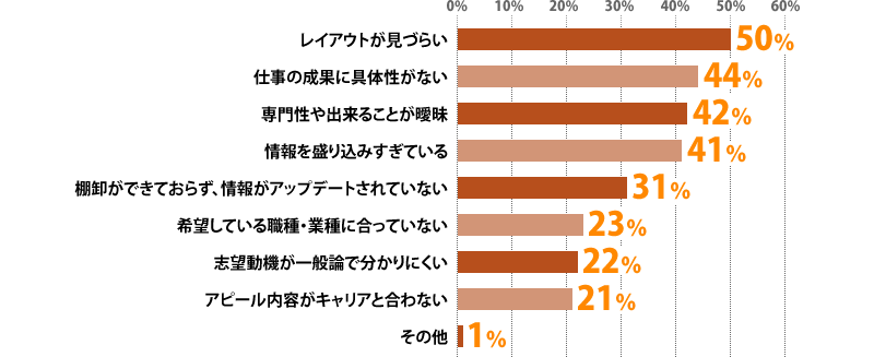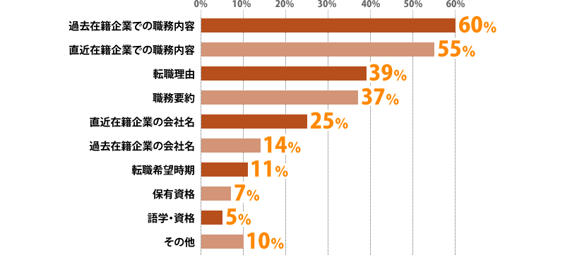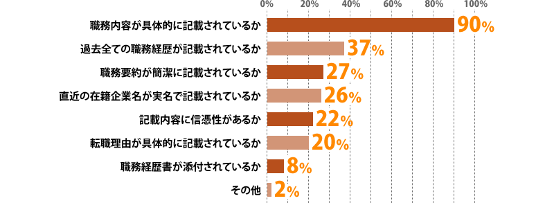 一方で「職務経歴」では、2年前の調査と変わらず「職務内容の具体性」が最も求められる結果に。