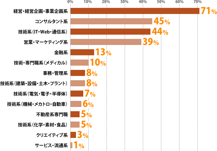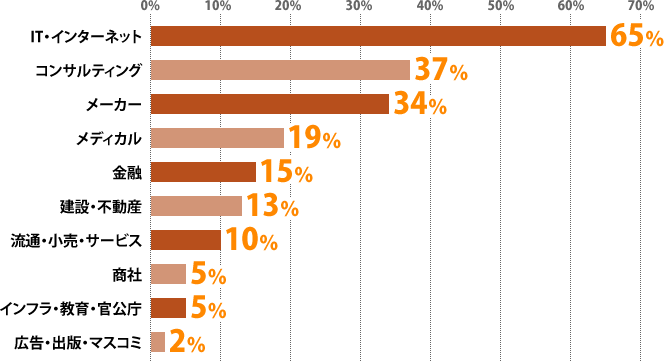 年収1000万円以上のポジションが増えている職種では、「技術系(IT・Web・通信系)」が2019年から+19ポイントと大幅に増加しました。企業のIT投資が増え、DX化・デジタル化を促進するポジションのニーズが今後も増加すると見るコンサルタントも。